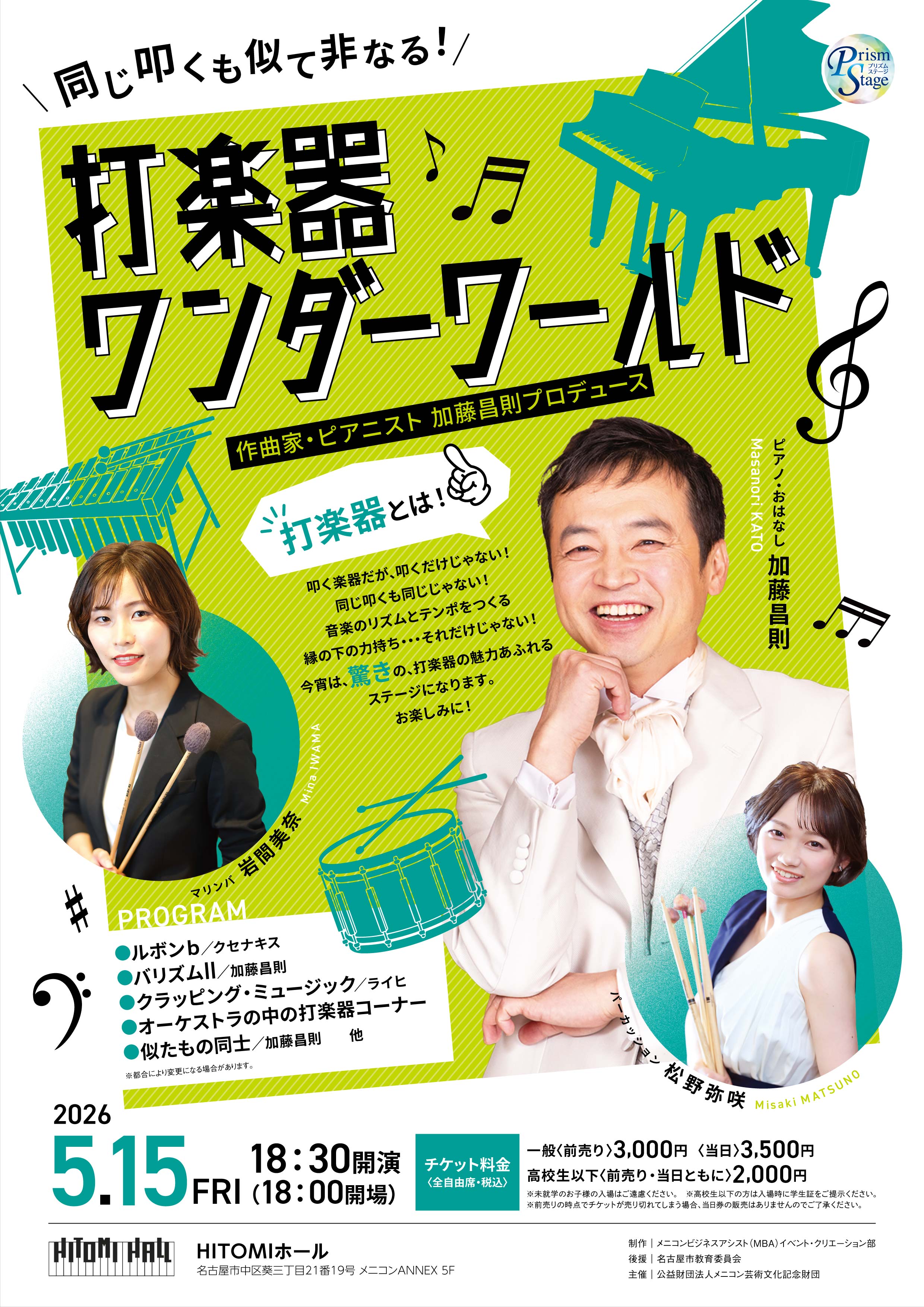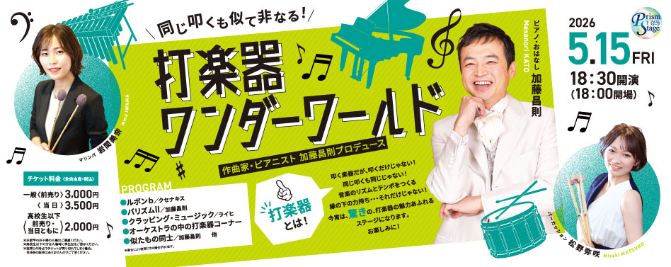 今宵は、驚きの、打楽器の魅力あふれるステージになります。お楽しみに!